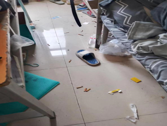 3.学生公寓宿舍内普遍存在吸烟现象,并随地乱扔烟头和垃圾,存在严重的安全隐患,包括火灾风险、健康问题和环境污染等,已现场批评指正违规学生。