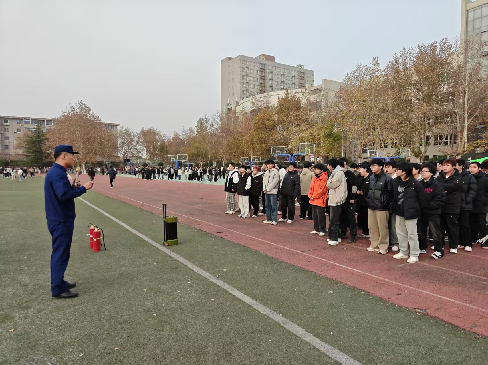 为深入贯彻落实“全民消防、生命至上”的消防安全理念,进一步提升师生员工的应急避险与自救互救能力,11月26日下午,我校组织咸阳校区6栋公寓楼、8个二级学院师生,开展了全链条、多场景消防疏散演练。