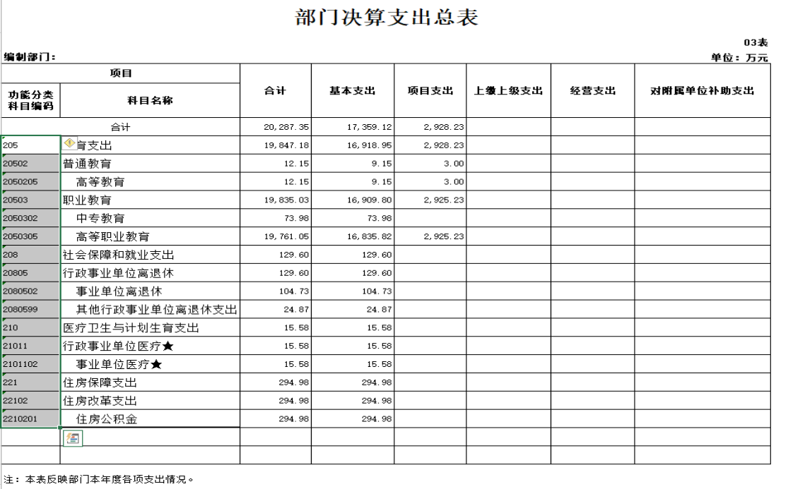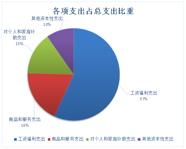 2017年实际总支出20,287.35万元。其中:基本支出17,359.12万元,占总支出的85.57%;项目支出2,928.23万元,占总支出的14.43%。全年总支出中:工资福利支出11,553.86万元,占总支出的56.95%;商品和服务支出3,742.62万元,占总支出的18.45%;对个人和家庭的补助支出3,030.07万元(含离退休人员支出及从本年学费中计提6%济困助学专项支出),占总支出的14.93%;其他资本性支出1,960.79万元,占总支出的9.67%。