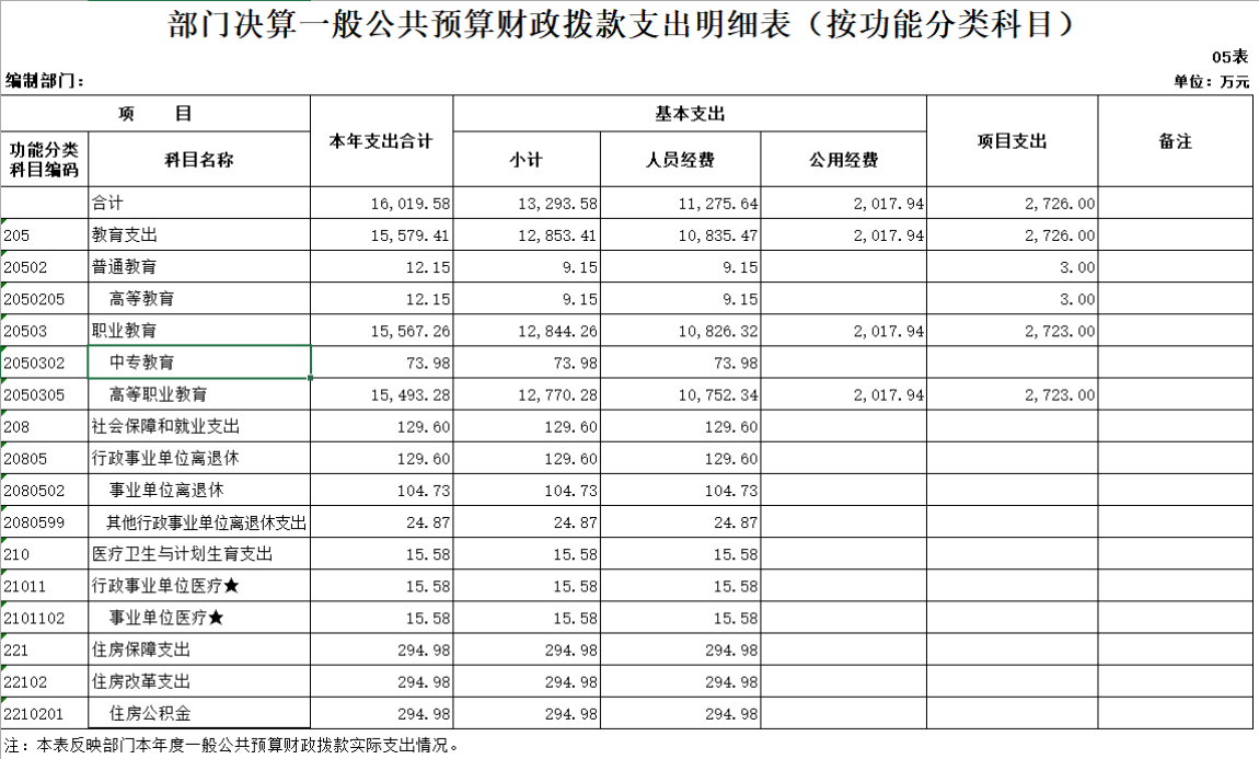 表5 部门决算一般公共预算财政拨款支出明细表(按功能分类科目)