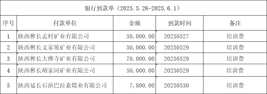 银行到款单(2025.5.26-2025.6.1)