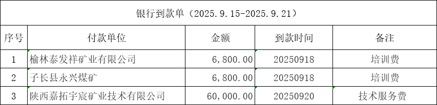 银行到款单(2025.9.15-2025.9.21)
