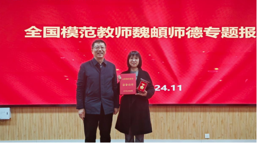 报告会开始前,学校党委书记刘予东为魏頔老师颁发了荣誉证书和奖章,并勉励广大青年教师要向魏頔老师学习,大力弘扬教育家精神,牢记为党育人、为国育才的初心使命,自信自强、踔厉奋发,以守正创新、笃行不怠的实际行动,在服务学校发展大局中实现个人成长与提升。