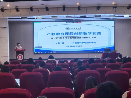 张博副研究员以《产教融合课程创新教学实践——以<STM32核心板电路设计与制作>为例》为示范主题,立足教学实践,现场进行教学示范课展示,对于教师教学过程中普遍存在的难点、堵点问题进行了细致梳理与交流,为与会教师教学能力的提升提供了可借鉴的宝贵经验。