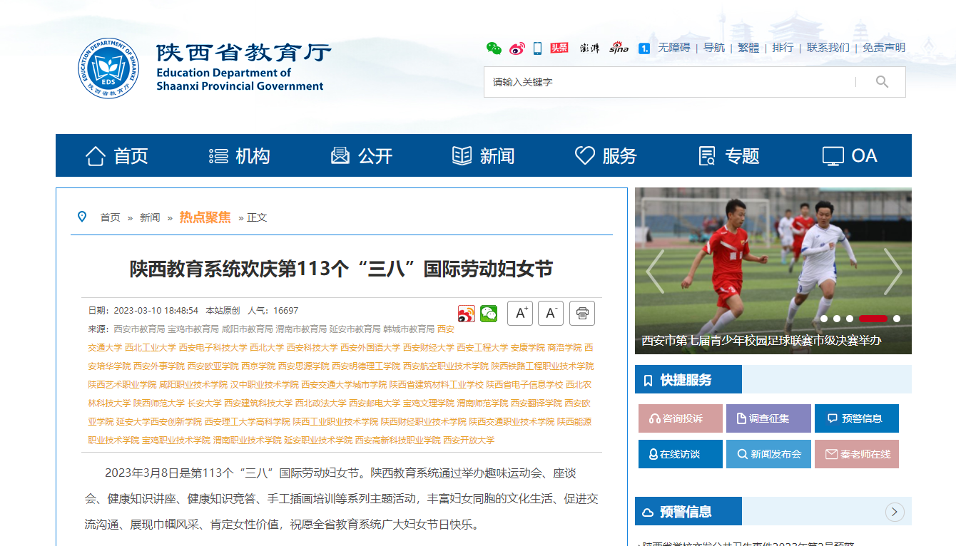 陕西省教育厅:陕西教育系统欢庆第113个“三八”国际劳动妇女节