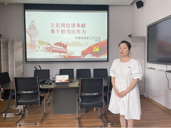 党课主题为《立足岗位讲奉献,勇于担当比作为》,张扬从“新时代对党员的新要求”“我是党员,从我做起”“立足岗位,讲奉献”“党员如何讲奉献有作为”四个方面展开讲述,为护理学院全体党员教师呈上一场精彩的党课。