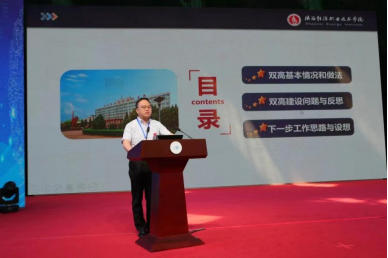 会上,朱忠军作题为《聚焦产业育训并举打造高水平行业特色样板校》的主题报告,介绍了我校“双高建设”情况,对如何体现双高绩效目标要求、内涵发展与标志性成果的关系及如何迎接双高第一轮“大考”和做好第二轮申报准备进行了分享。在下一步工作思路与设想中,他从“四个引领”为学校发展把好方向、“四大保障”为学校发展打牢基础、“十大工程”推动学校高质量发展三方面助力双高院校建设的主要做法及取得的成效进行了交流。