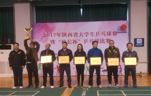 2017年11月11日,陕西省第二十二届“校长杯”乒乓球比赛在西安交通大学举行,比赛分甲乙两组,甲组为本科院校,乙组为高职院校。乙组共18支代表队参赛,我校党委书记令狐培选、纪委书记张普礼、工会主席王恒斐三位同志代表学校参赛,经过两天激烈角逐,我校代表队获得乙组第七名。