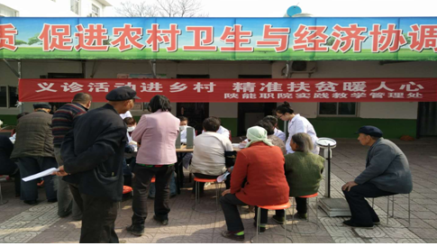 11月4日,实践教学管理处11名教师和4名学生志愿者在实践教学管理处黄昆龙处长和党政办副主任李炜怿同志的带领下赴兴平市赵村镇赵北村开展主题为“义诊活动进乡村,精准扶贫暖人心”高校对口支援助力脱贫攻坚义诊活动。期间,兴平市扶贫办副主任王建辉,兴平市卫计局副局长焦智宏,赵村卫生院院长杨亚峰为义诊活动做了大量的准备工作,协助办好活动。
