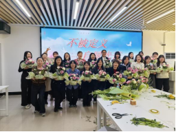 经过悉心创作,一盆盆错落有致、生机盎然的插花作品逐一呈现,每一件作品都独具匠心,既展现了女教职工们的审美情趣与巧手匠心,也寄托了大家对美好生活的向往、对教育事业的热爱。大家手捧自己的作品合影留念,定格美好瞬间,脸上洋溢着幸福愉悦的笑容,沉浸式感受着节日的温馨与美好。