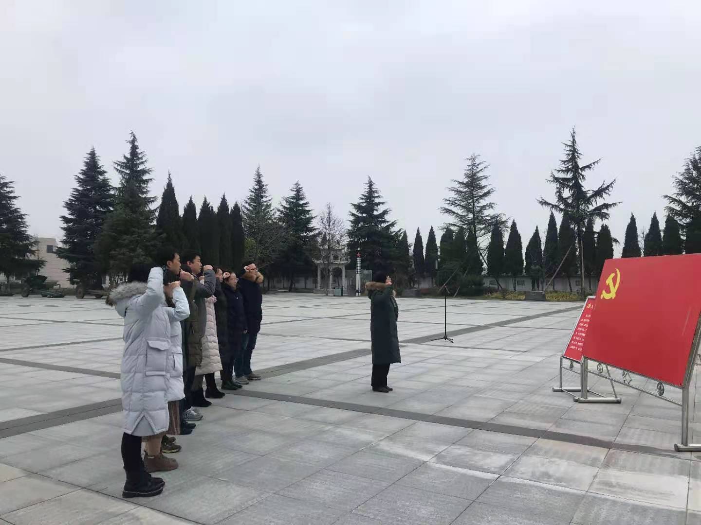 党员们在党旗前、在纪念碑下重温入党誓词,大家表示,在今后的工作中一定要坚定理想信念,铭记初心使命。