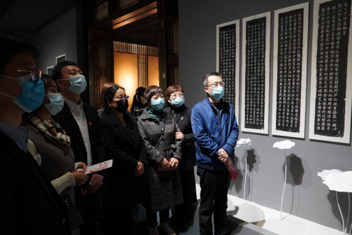 全体党员教师在秦风颂廉主题展览前合影