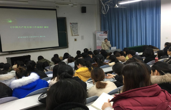 12月24日下午,护理学院学生党支部书记陈小红老师为学生党支部发展对象讲党课,党课主题为“高校学生党员的培养发展和教育管理以及《中国共产党支部工作条例》解析”。