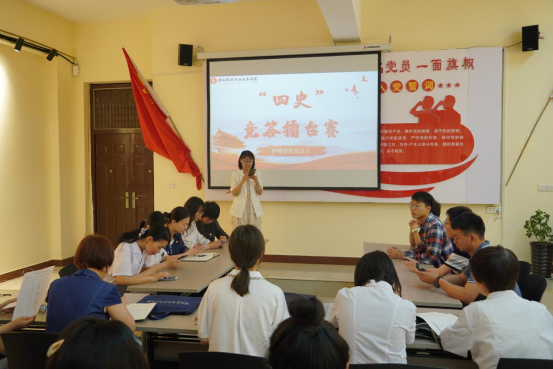 根据学校《关于开展“网上重走长征路”暨推动“四史”学习等教育活动安排的通知》《关于选拔组队参加学校“四史”竞答擂台赛的通知》文件精神,护理学院党总支为进一步推进“四史”学习教育,于6月2日下午在党建工作室举行“四史”竞答擂台赛,护理学院全体教职工积极参加。