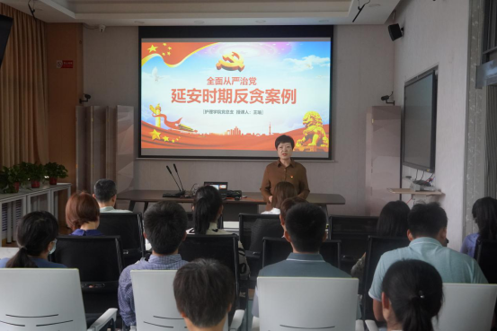 党课主题为《全面从严治党——延安时期反贪案例》,王瑜以延安时期著名战斗英雄肖玉璧案例为切入点,引出本次党课内容。她分别从“英雄自古出磨难”、“不满分配七品芝麻官”、“敌人送的糖衣炮弹”三个阶段循序渐进讲述了肖玉璧是如何一步一步走向犯罪的深渊,最终导致“东窗事发”,以及“毛主席的铁面无私”,遵照党的章程规定给予人民群众一个满意的答复的历史案例。同时指出肖玉璧案件是毛主席在反腐道路上的一个重要胜利,为革命队伍的发展壮大已及日后我党取得全面性胜利奠定了良好的基础。