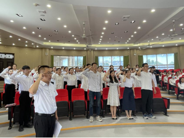 在学工党支部宣传委员王瑞娟同志带领下,全体预备党员面向鲜红的党旗,举起右手握拳庄严宣誓,郑重表达为共产主义事业奋斗终身的雄心壮志。