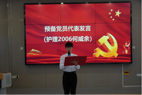 宣誓完毕后,预备党员代表何威余同志代表全体预备党员发言。他表示要把入党誓词内化于心、外化于行,加强党的理论学习,提高自身政治素养;在日常的工作中积极发挥先锋模范带头作用,勇于担当负责,积极主动作为,用实际行动践行党全心全意为人民服务的根本宗旨,做一个有理想、有担当、有本领的时代新青年。