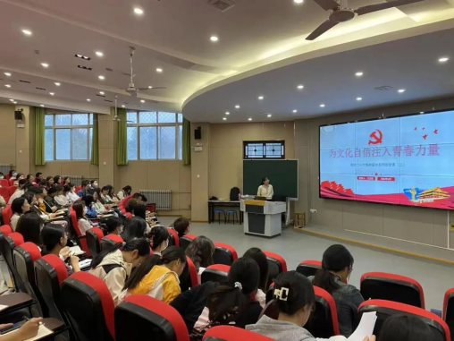 4月27日,护理学院辅导员王嫒璐向全院入党积极分子、预备党员做了题为《为文化自信注入青春力量》的微党课。