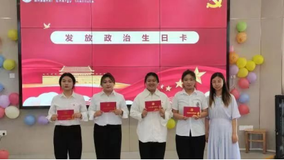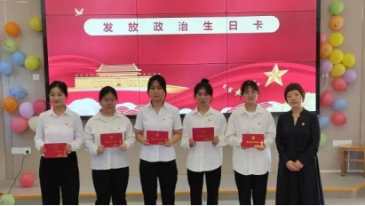 王瑜,仵卫民,陈小红,张希为毕业生党员发放政治生日卡。