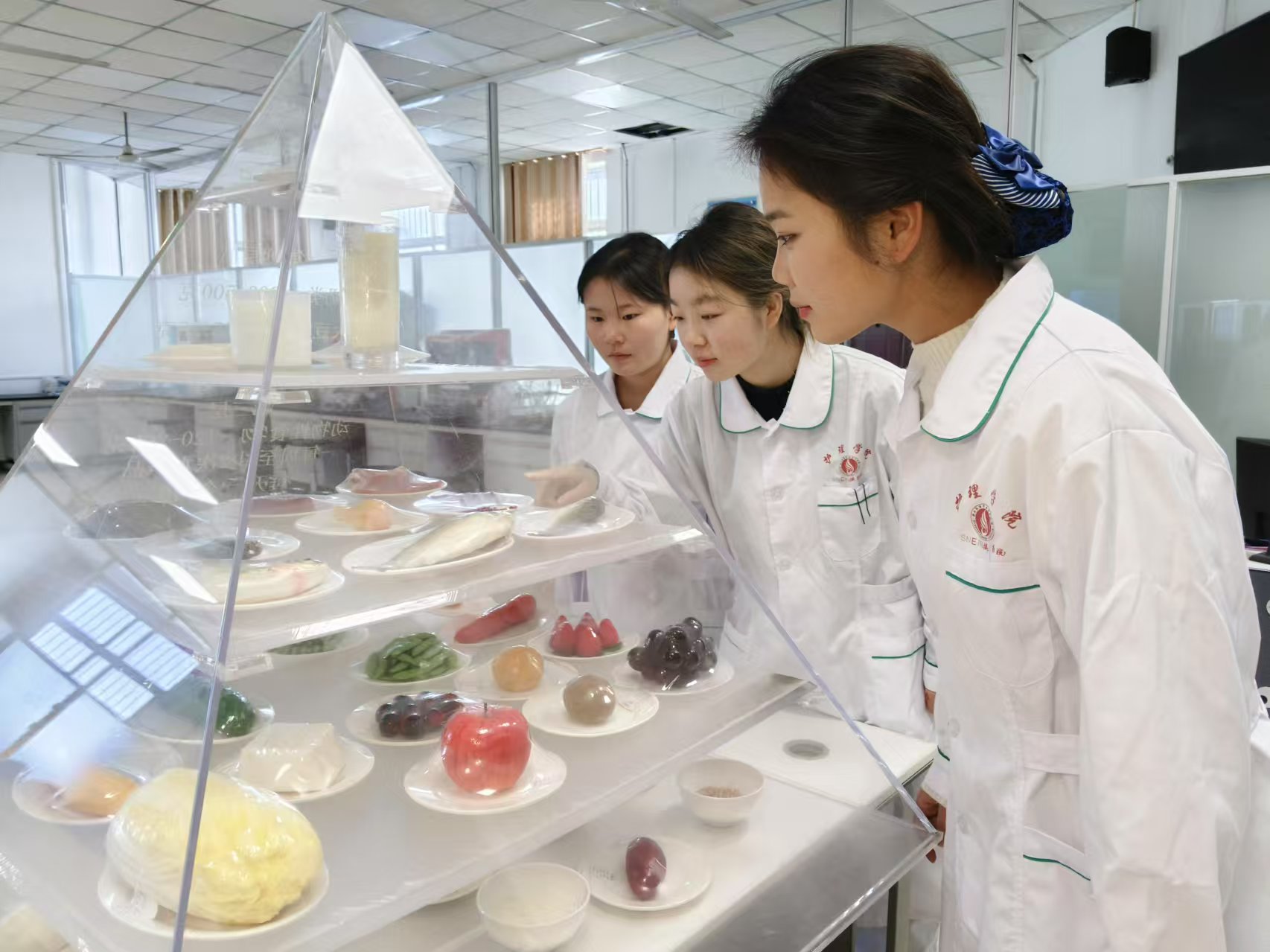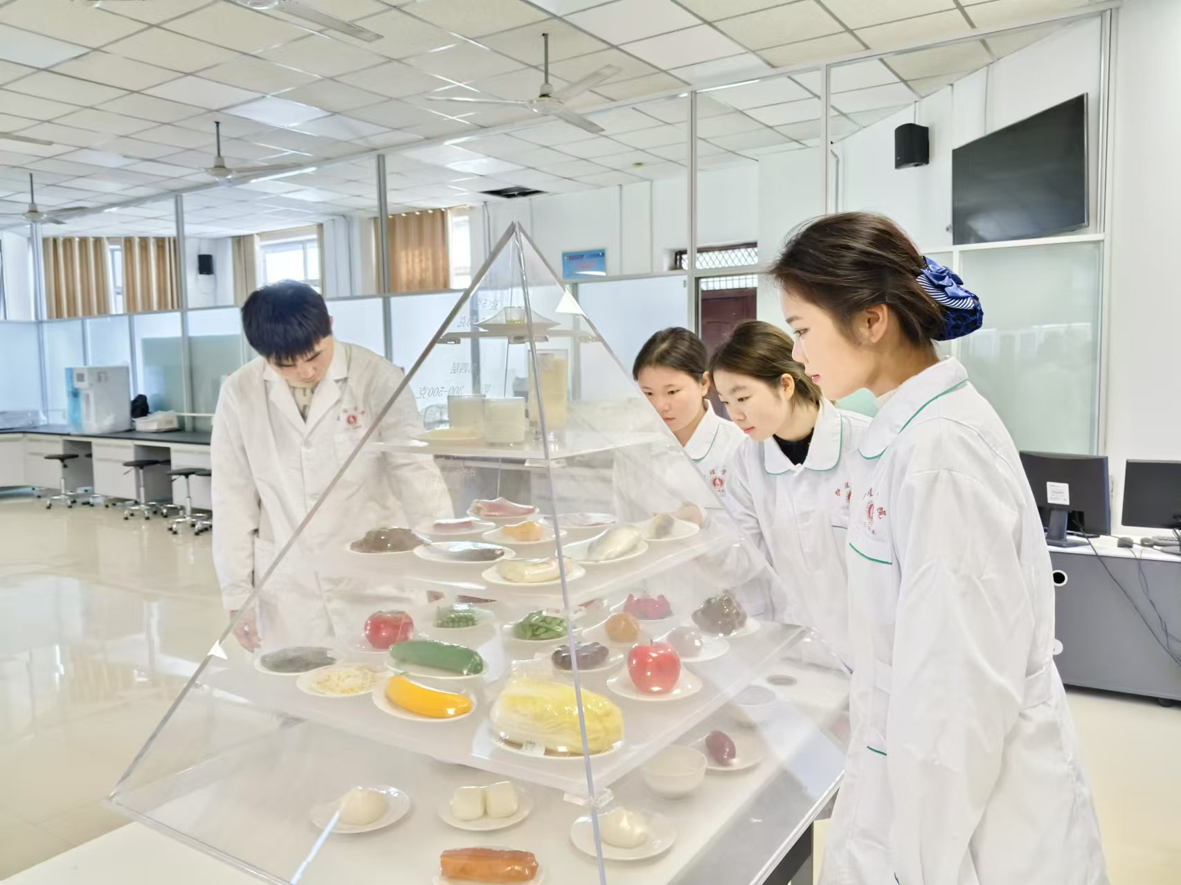 医学营养专业校内实训室占地120m2,设置营养咨询室和营养代谢室。营养咨询室配备中国居民平衡膳食宝塔模型,食品标本模型,身高体重测量仪器,人体成分分析仪,皮质厚度计,握力计,营养配餐实训软件等。营养代谢室配备水果硬度计,紫外分光光度计,粗纤维测定仪,火焰光度计,脂肪测定仪,黄曲霉测定仪,全自动凯氏定氮仪,超声细胞破碎仪,离心机、无菌操作台,生化培养箱,恒温发酵摇床等仪器设备。