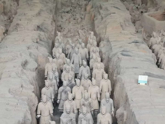 秦始皇兵马俑被誉为“世界第八大奇迹”,是中国古代辉煌文明的一张金字名片。同学们跟随讲解,分别参观了1、2、3号俑坑,引入眼帘的兵马俑规模巨大,场面震撼,有列队齐整的兵马俑编队,将军俑、跪射俑等,有彩绘兵马俑,青铜宝剑,每个俑面部刻画都非常细腻,表情更是栩栩如生。还观摩了考古工作者们现场修补工作,同学们惊叹古代劳动人民的勤劳与智慧,更被中国悠久的历史与灿烂辉煌的文化所折服。