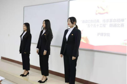 11月26日下午,护理学院在101阶梯教室开展“诵读红色经典,传承革命精神”暨“五个五十工程”朗诵比赛,董莉娟、雷东强、杜程程老师担任本次比赛评委。