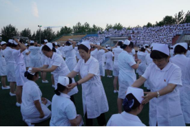 5月12日,面向2019级全体学生举办手语操表演,致敬5·12国际护士节。通过授帽宣誓献花,表演手语操《你笑起来真好看》《听我说谢谢你》,帮助学生坚定职业理想,热爱护理职业,注重职业形象,感谢师恩,以积极向上的职业态度,用微笑面对职场生活中的困难,用微笑服务患者。