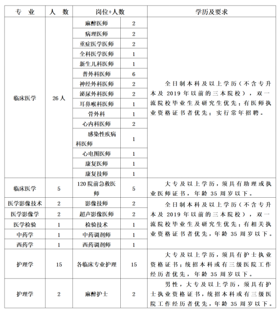 2.全日制普通高等医学院校应(往)届优秀毕业生,报名资格对应上述岗位招聘资格要求,有三级医院实习或工作经历者优先考虑,往届毕业生须取得相关医学资格证书。