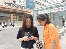 下午,调研团成员前往商场、地铁、社区、街道进行调研、发放问卷,进一步了解城市人群对三孩政策的响应程度。发放问卷的过程稍有曲折,但成员们不气馁,互相鼓劲加油,最后圆满地完成了当天的工作量。