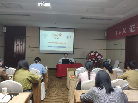 开班仪式结束后,陕西能源职业技术学院教授仵卫民为学员授课。仵老师本次讲授主题为“1+X幼儿照护课证融合路径研究”,她通过政策学习(职教二十条)、中职专业人才培养方案的解读以及1+X幼儿照护证书试点融入人才培养方案路径探索,为学员们讲解1+X幼儿照护培训与人才培养方案融合的方法,并以《儿科护理》课程为例进行详细叙述。