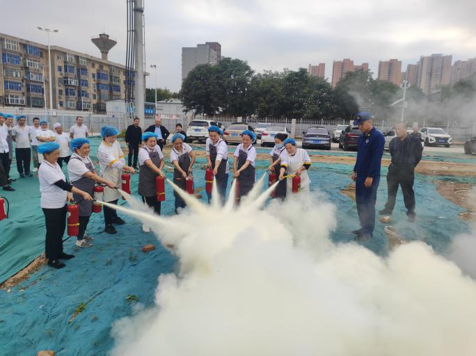 为进一步强化学生餐厅消防安全管理,提升从业人员应急处置能力,切实保障师生用餐安全与校园稳定,9月30日,后勤保障处联合保卫处,特邀渭城区消防队开展学生餐厅从业人员专项消防知识培训及实战演练,校党委副书记任向明亲临现场指导并参与示范,为校园食品安全与消防安全“双重护航”。