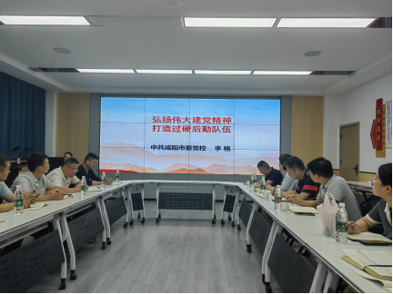 6月18日,为学习贯彻党的二十大精神,深入开展学习贯彻习近平新时代中国特色社会主义思想主题教育,践行“学思想、强党性、重实践、建新功”的总要求,切实做到学史明理、学史增信、学史崇德、学史力行,后勤党支部邀请中共咸阳市委党校教师李格为支部党员开展题为《弘扬伟大建党精神打造过硬后勤队伍》的专题党课教育。