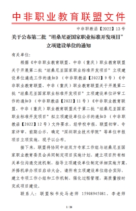 我校获批第二批“坦桑尼亚国家职业标准开发项目”立项建设单位