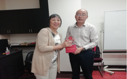 随后威尼尔学院校长、教学副校长、国际交流处负责人参加了SnyC20团结业证书颁发仪式。学校外事办主任任向明向为此次访学对接及翻译的朱晓阳老师赠送了陕能院文化展品。John McMahon先生逐一为全体团员颁发结业证书。颁发仪式后,赵新法做总结讲话指出:“感谢威尼尔学院诚挚、热烈、周到的安排,再次向所有授课外籍教师表示真诚的谢意,也同时向国际交流处的全程跟踪服务表达谢意;经过数日的听课、接触、感受并熟识畅谈,让大家耳目一新,收益匪浅;双方还存在深层次的交流合作,希望能密切交流,加强联络,争取新进展,倡导新合作,展现新模式,实现新愿景。”活动结束后,双方在友好、诚挚、热烈的氛围中合影留念。