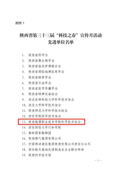 近日,陕西省科学技术协会发布了关于第三十三届“科技之春”宣传月活动情况的通报,我校作为本届全省唯一一所入选的高职院校,已连续4年获表彰,充分彰显了我校在科技创新和科普宣传方面的持续影响力和突出成绩。