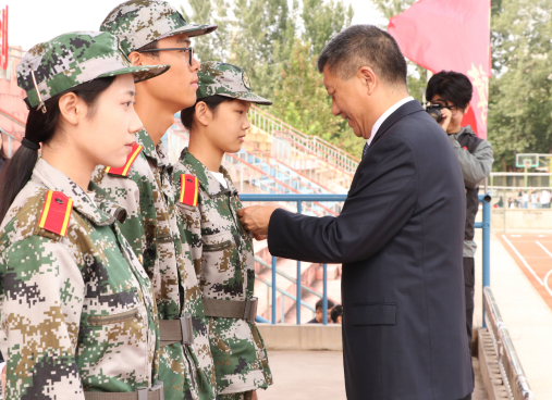 在嘹亮的国歌声中,开学典礼暨军训闭营仪式拉开帷幕。