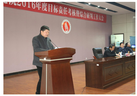 随后,与会人员听取了学院党政领导班子成员2016年度目标责任述职报告,填写了相关测评表。