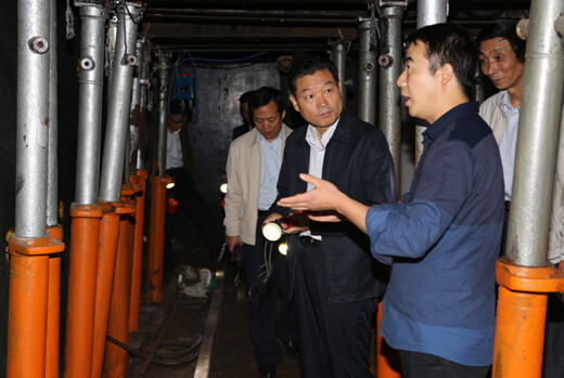 图为李厅长(左二)参观模拟矿井实训室