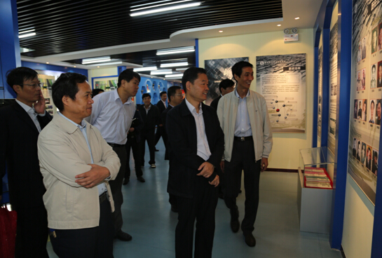 图为李厅长(右二)参观校史馆