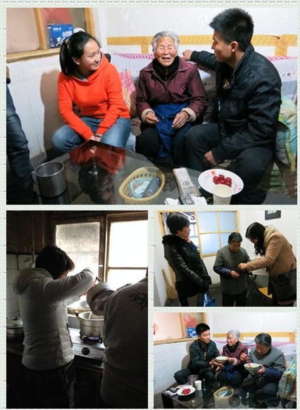 3月5日上午,黄雁社区主任陈蔷和西安校区团总支书记苗志青组织了12名学生志愿者,前往光大新居慰问87岁老人胡秀荣和80岁老人赵爱明。同学们给老人带去了米、面、油等生活用品,并帮助老人打扫卫生、整理房间。当听说胡秀荣老人过年没能吃上饺子,志愿者集体下厨,包起了饺子。吃到热腾腾的饺子,老人顿时热泪盈眶。新闻记者现场采访,相关报道刊登在《西安晚报》3月6日第5版。