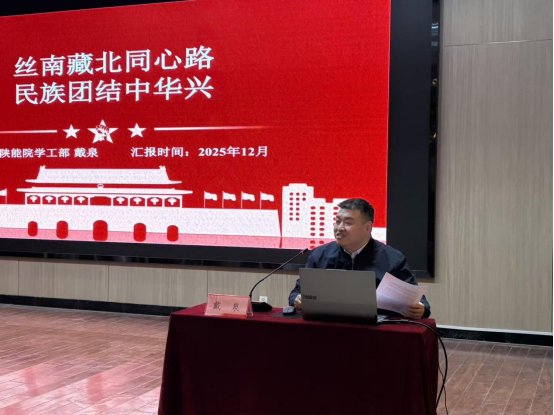12月3日下午,“乌金大讲堂”第十三期讲座在实训楼六楼报告厅开讲。本次讲座以“丝南藏北同心路 民族团结中华兴”为主题,由学工部派驻教师、副教授、硕士生导师戴泉主讲,能源化工学院350余名师生参加。