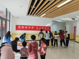 随后,e小驿成员与孩子们混合编组,共同开展了形式多样的互动游戏。投壶、掷沙包、套环等传统趣味游戏轮番上演,活动现场欢声笑语不断。党员教师们俯身指导,志愿者们耐心陪伴,孩子们全情投入。小小的游戏,不仅拉近了彼此的距离,更在协作与鼓励中,让孩子们感受到了来自社会的关爱与支持,展现了自信、开朗的一面。游戏环节既是对孩子们动手能力与协作精神的一次生动锻炼,也是一堂深刻的“爱心实践课”,让参与师生在付出中体悟到奉献的价值与快乐。为延续这份快乐,助力学校日常文体活动开展,“e小驿”志愿者服务队代表将本次活动所用的全套趣味游戏道具正式捐赠给学校,用实际行动为孩子们的成长添砖加瓦。