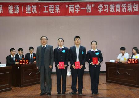 为推动 “两学一做”学习教育的开展,由机电工程系党总支与能源(建筑)工程系党总支联合举办的“两学一做”学习教育知识竞赛活动于4月13日下午在实训楼六楼报告厅进行。党委副书记、院长刘予东,党委副书记郭开龙、两系党政负责人及师生代表300余人参加活动。