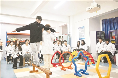 12月24日,在陕西能源职业技术学院实训中心三楼现代康养学院康复博士工作室,何芳梅副主任医师正带领学生全力备赛2024“一带一路”金砖国家技能发展与技术创新大赛。