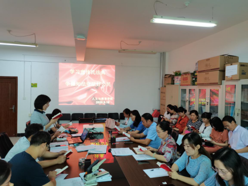 根据学校《关于开展“民法典进学校”活动周相关活动的通知》 (陕能院党宣[2020]5号)安排,9月16日下午,人文与教育学院全体教职工在党总支书记于秋玲的主持下进行了集中学习。