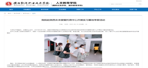 本年度,我院托育教研室秉持“产教融合、协同发展”理念,聚焦行业企业核心需求,精准对接托育服务机构、早教中心等各类相关企业,通过多元举措深化校企合作,切实提升服务行业能力,助力托育行业高质量发展。