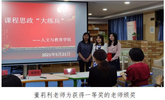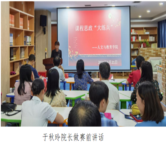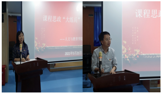 2021年5月21日 人文与教育学院在图书馆三楼教师沙龙活动室举行了课程思政“大练兵”活动,全体教师参与。