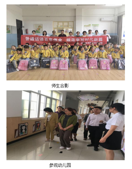 为了充分发挥学校人才优势、专业办学优势和智力优势,加大国家通用语言文字推广力度,传承弘扬以语言文字为载体的中华优秀文化,助力乡村振兴战略实施,提升我校的社会服务能力。2021年9月17日下午,时值第24届“推普周”之时,学院党政办办公室副主任唐恭贺以及人文与教育学院院长于秋玲、综合办主任王利荣等一行6人前往兴平市西吴中心幼儿园,为该幼儿园的师生带去了丰富多彩的“推普周”活动。参加本次活动的领导还有兴平市教育局资助办主任王峰、西吴中心小学校长符宏志。
