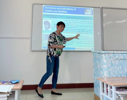 李妍老师示范讲解了Physical Assessment一节内容,不仅让学生了解了高血压等慢性病及其预防知识,而且通过生动鲜活的实例,让学生懂得了“国家强,民族强,人民就更幸福更健康”的道理。