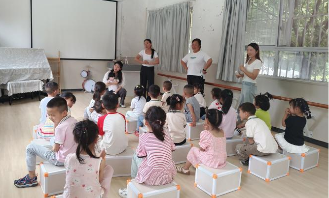 在中心幼儿园,托育专业教师向幼儿园保教人员详细讲解培训了海姆立克幼儿急救法,美育专业教师即兴弹奏钢琴曲与幼儿们互动,并为活动现场的小朋友们送上了礼物和祝福。
